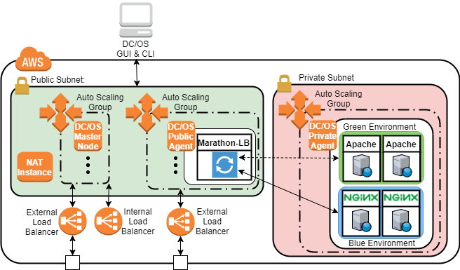 Marathon-LB is a reverse proxy load balancer for Marathon applications. Marathon-LB supports TCP, HTTP, and HTTPS protocols and automatically updates its configuration in real-time as you add and remove applications from the cluster. Marathon-LB can be used as a public-facing load balancer running on public agents to allow ingress traffic into the cluster or as an internal load balancer. Load balance application traffic with Marathon-LB in DC/OS and keep traffic flowing by performing a zero downtime blue/green deployment in this Lab.