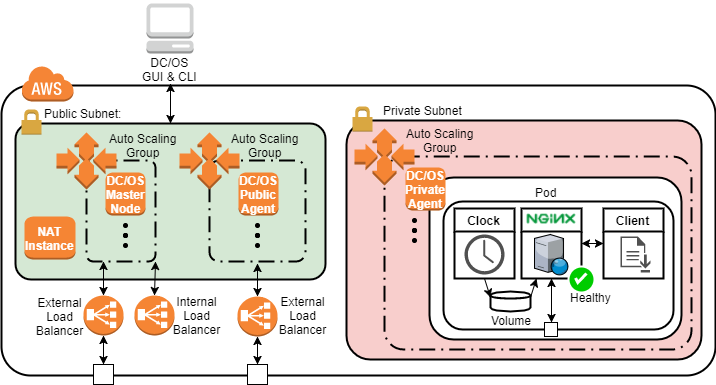 By working with Marathon pods in DC/OS you can share resources among a group of applications on a single agent and manage them as a single unit. This is often used for running a logging or analytics application alongside a primary application. Legacy applications may also fit into a pod without having to update any code. For example, if services in a legacy application communicate over the loopback network interface. In this Lab, you will deploy a couple of pods to illustrate the capabilities and limitations of working with Marathon pods in DC/OS.